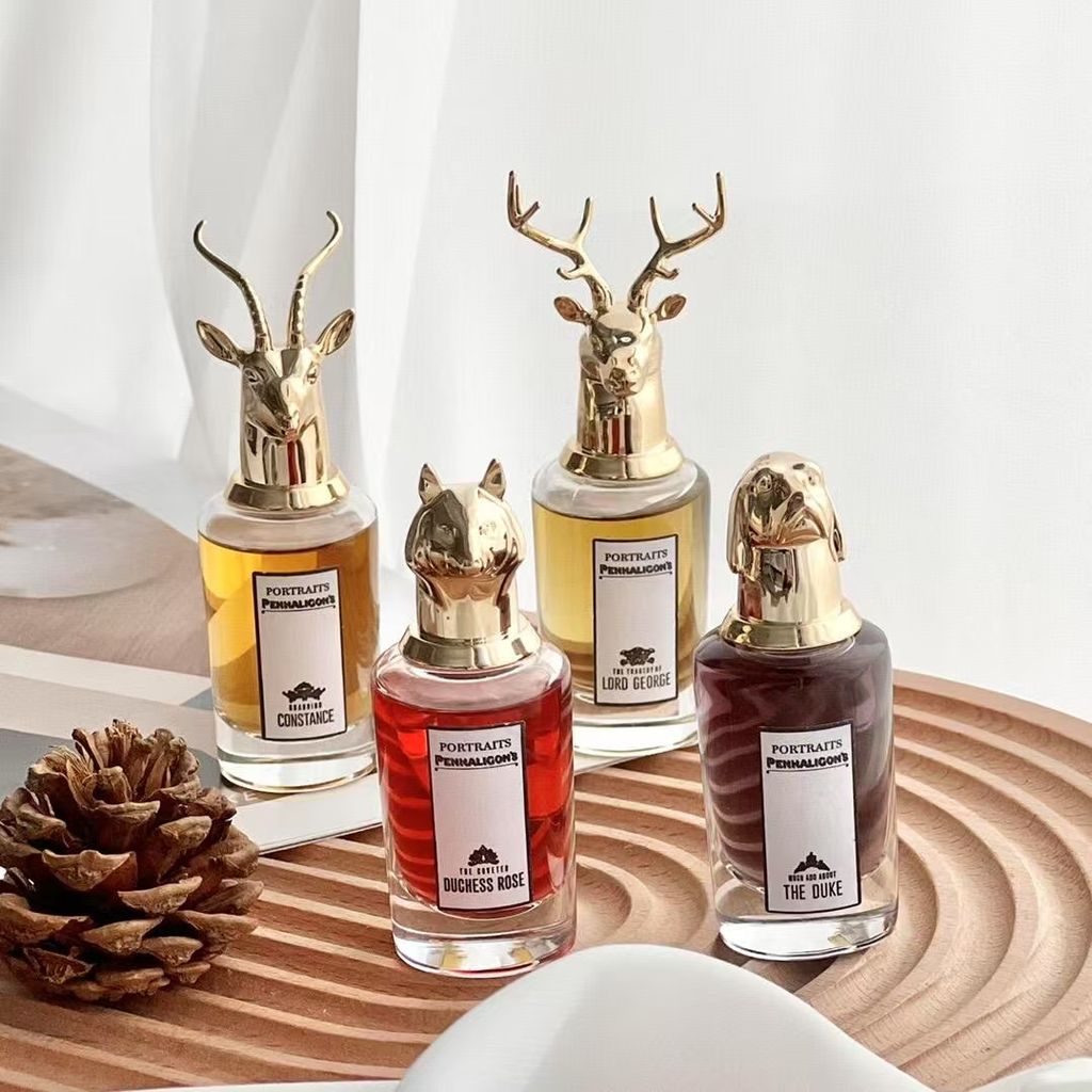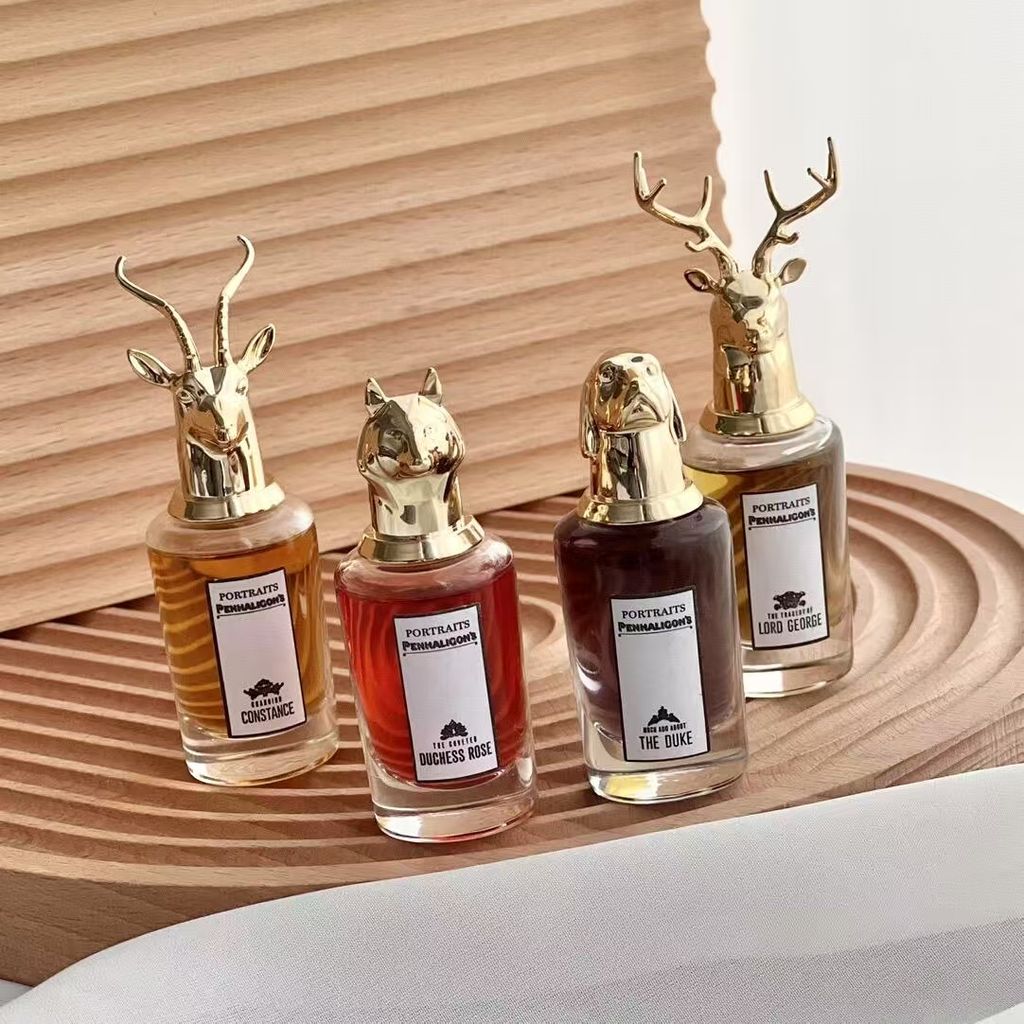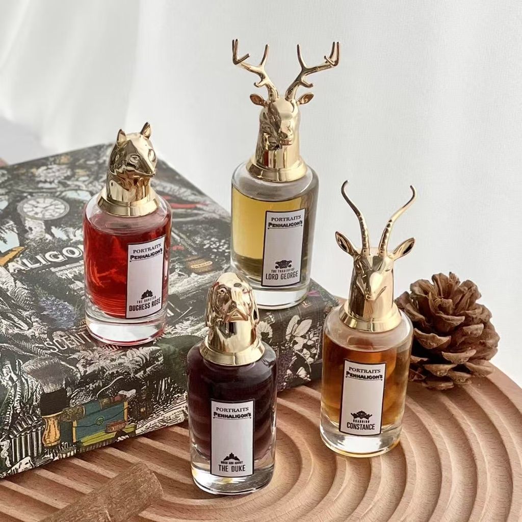 瓶子設計的靈感來自英國貴族的傳奇故事和動物圖騰。 它裝在一個豪華的玻璃瓶中,有一個精緻的動物頭瓶蓋,展示了低調的奢華和精緻的工藝。 每瓶香水都是一件藝術品,完美地反映了Penhaligon的英國美學和品牌精神。