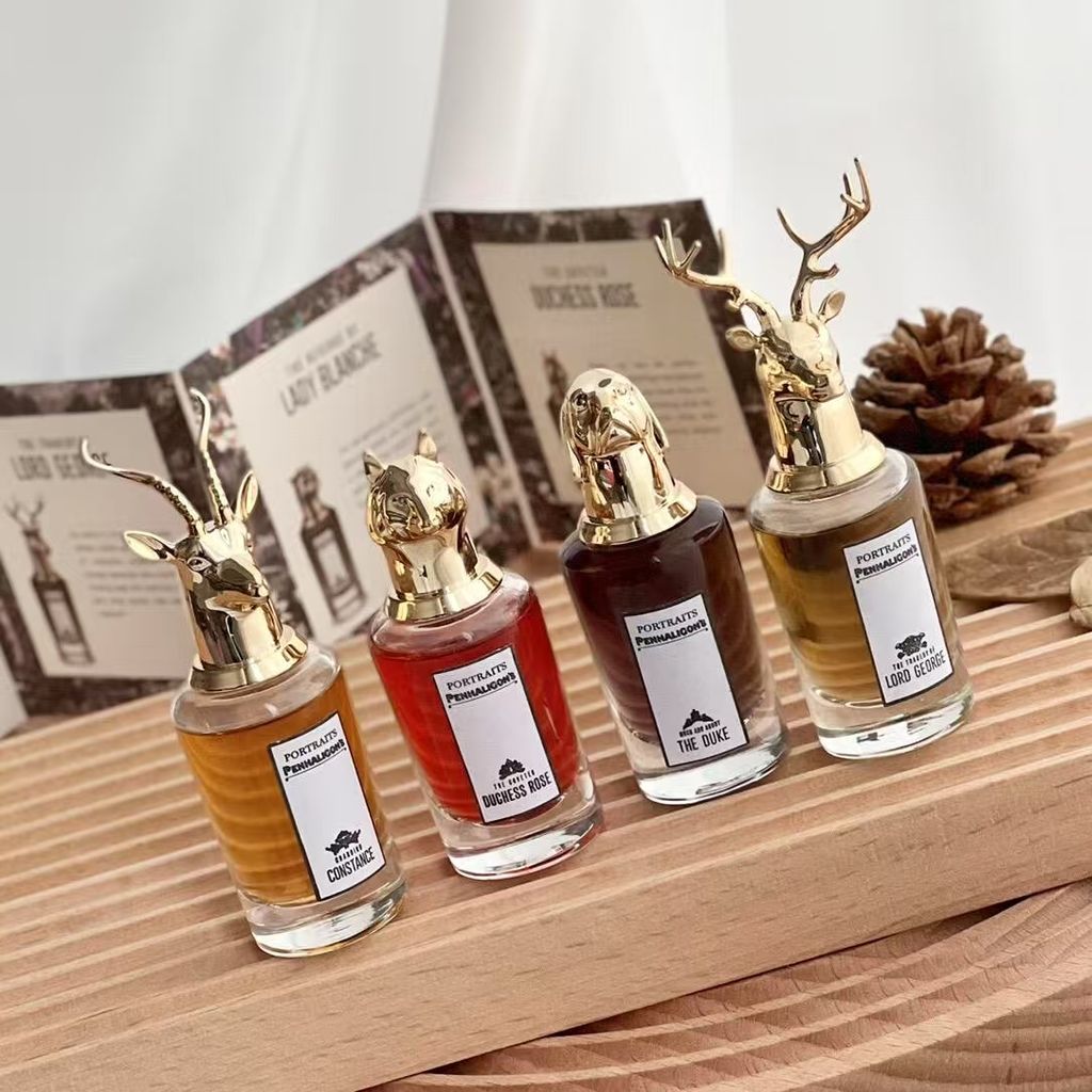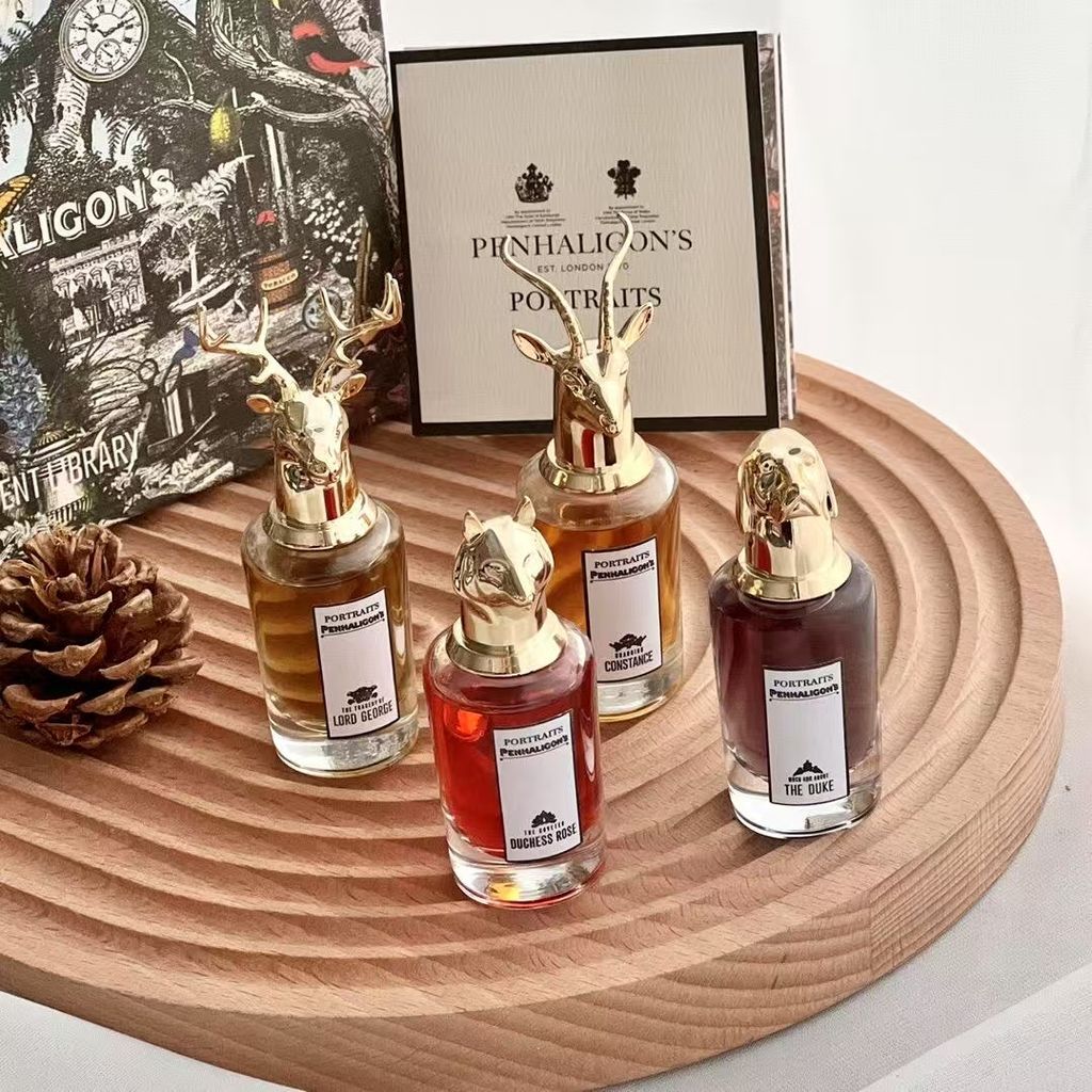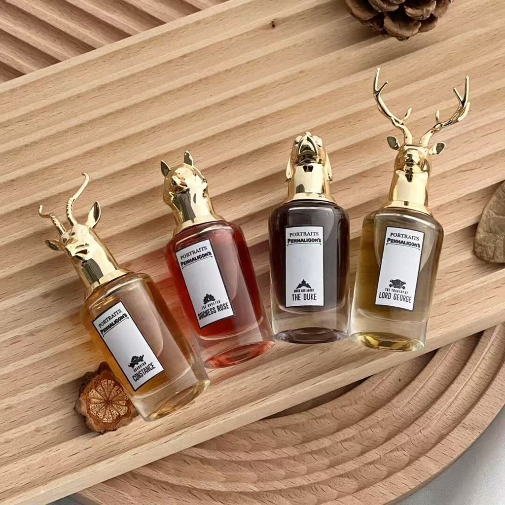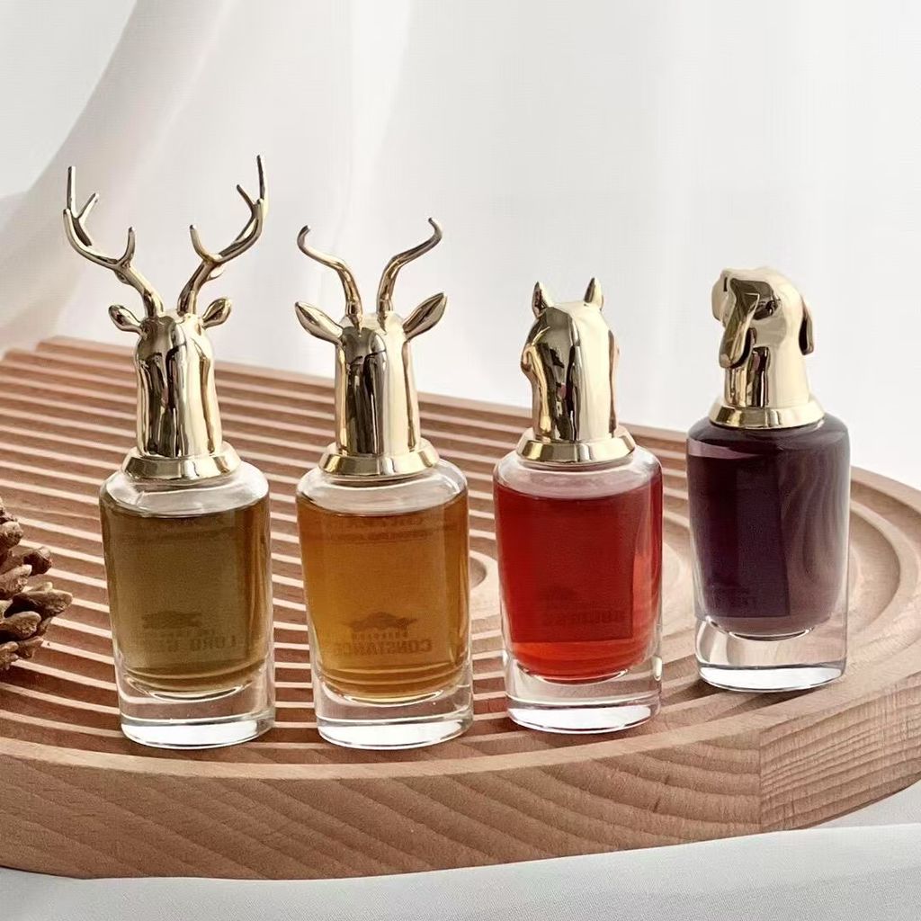 瓶子設計的靈感來自英國貴族的傳奇故事和動物圖騰。 它裝在一個豪華的玻璃瓶中,有一個精緻的動物頭瓶蓋,展示了低調的奢華和精緻的工藝。 每瓶香水都是一件藝術品,完美地反映了Penhaligon的英國美學和品牌精神。