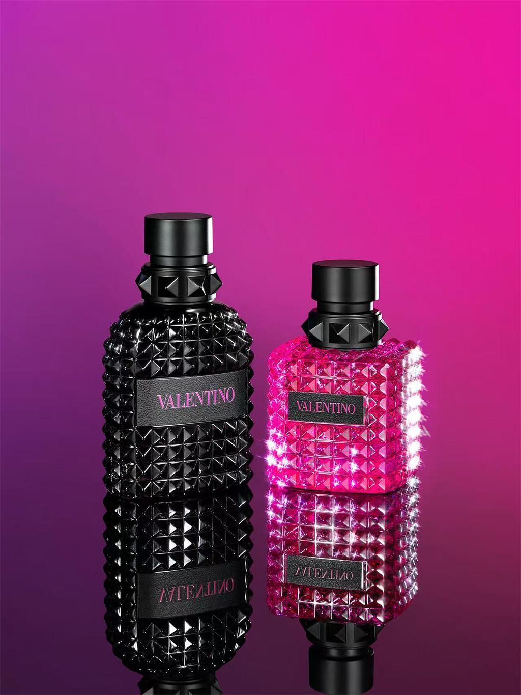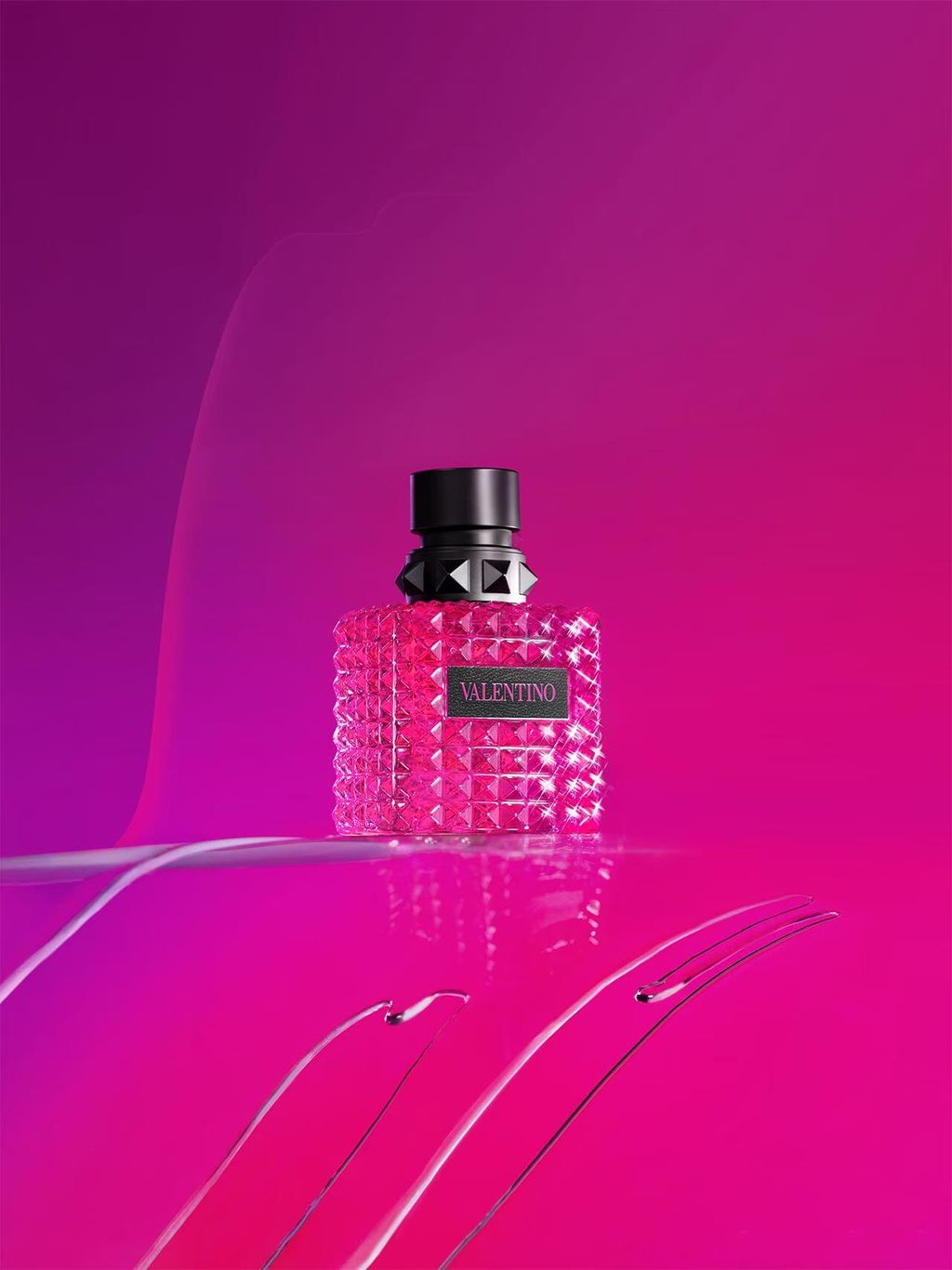 瓶子设计的灵感来自冒险精神和神秘魅力。它采用简约而奢华的玻璃瓶装呈现,搭配华伦天奴标志性的金属瓶盖和品牌标志,展现出低调的奢华和精湛的工艺。整体设计与香水主题相呼应,完美体现了Valentino的时尚美学和品牌精神。