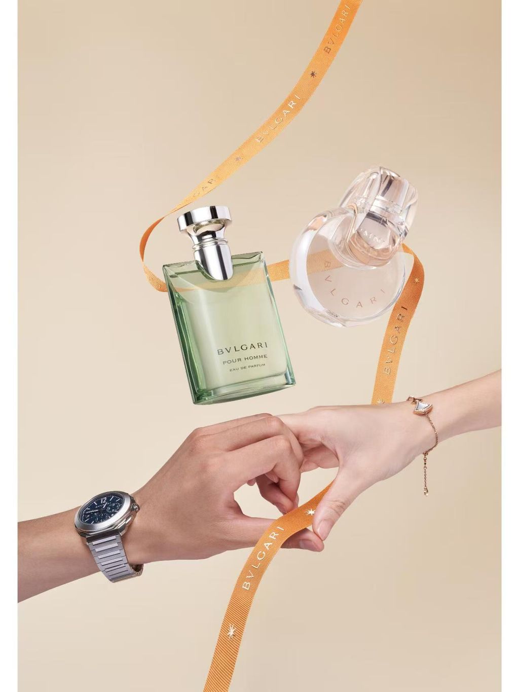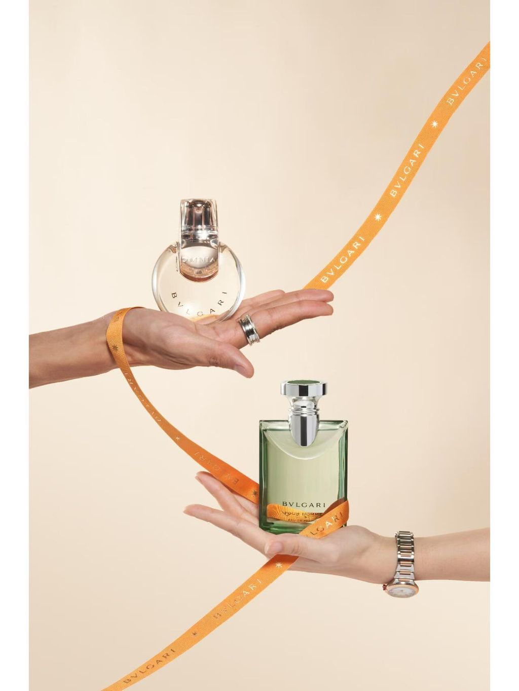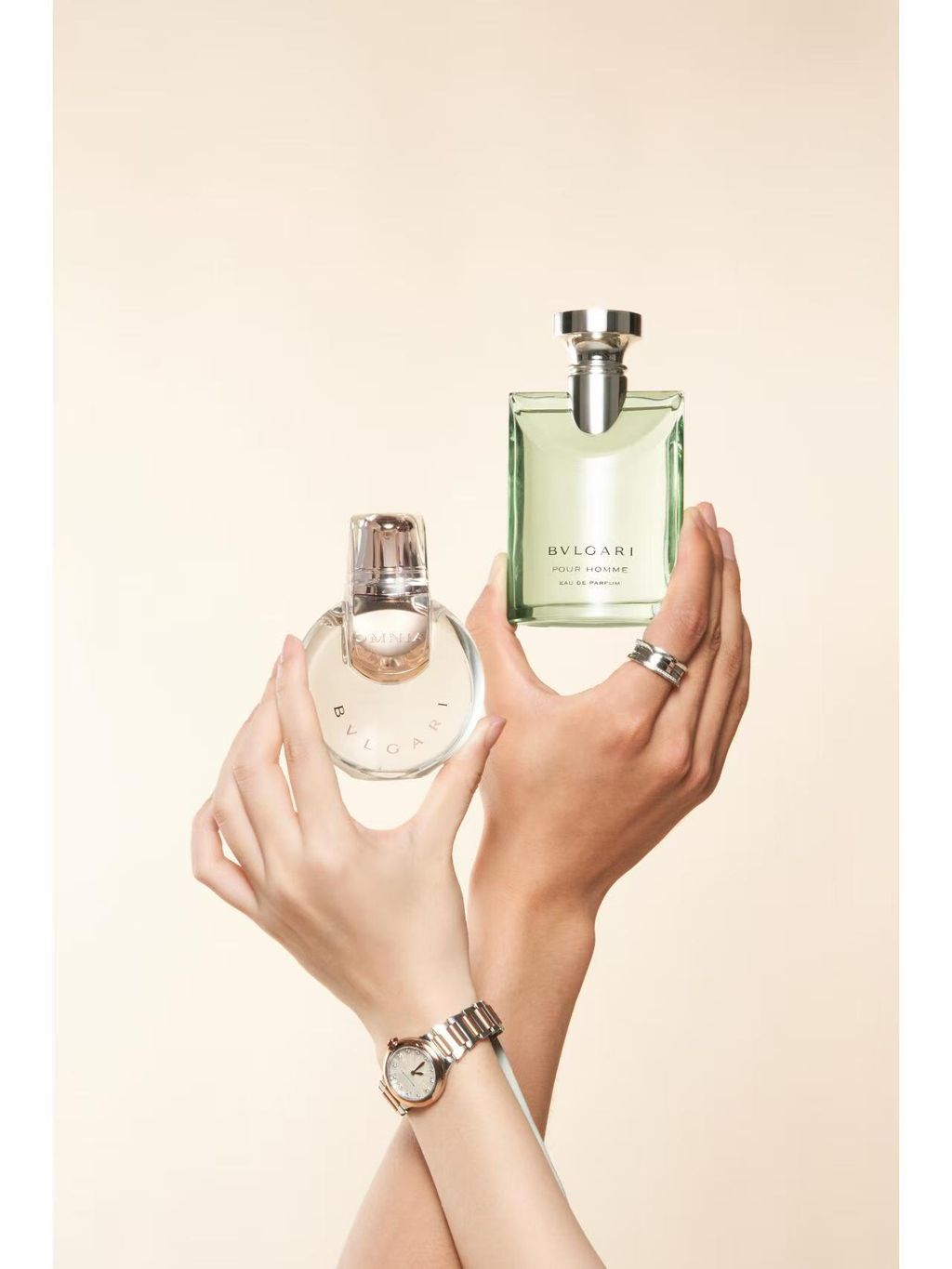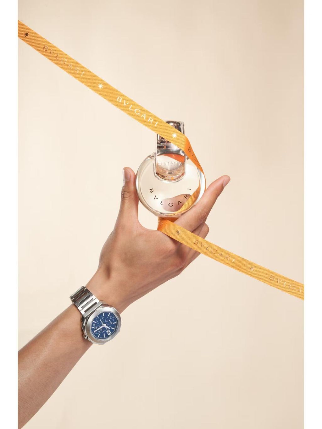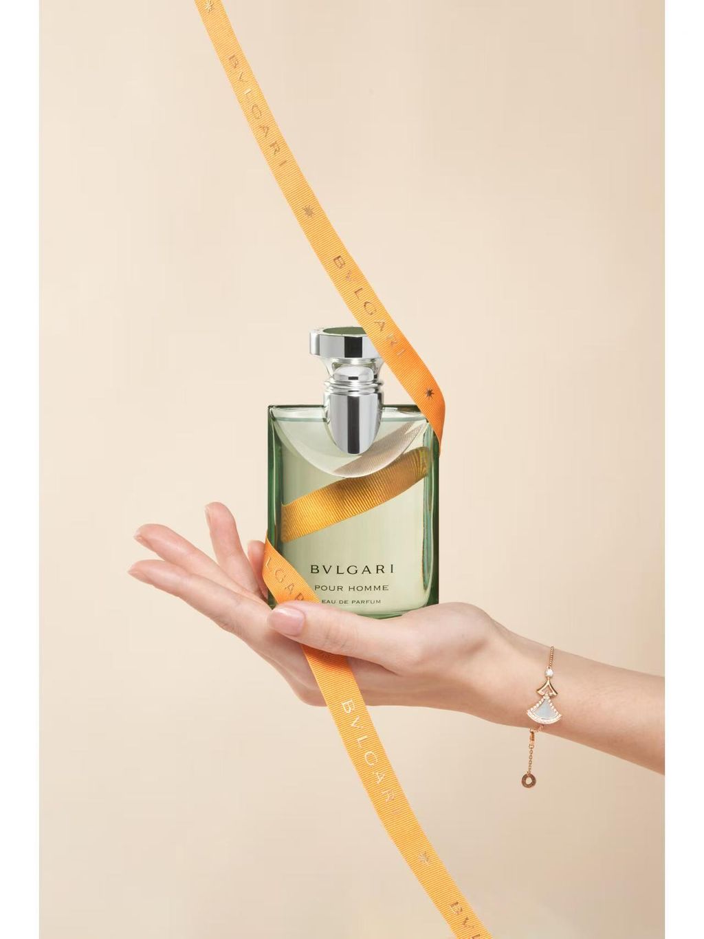 瓶身设计:透明玻璃方瓶搭配银色金属瓶盖,灵感源自宝格丽罗马珠宝的几何线条,简约奢华。