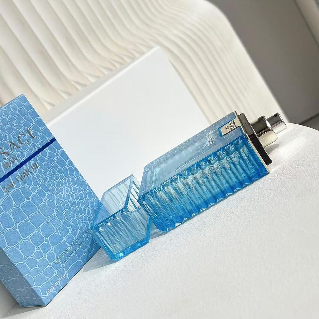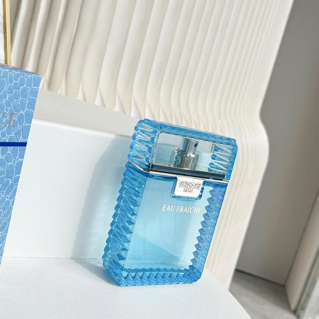 瓶子設計的靈感來自清新自然的氛圍和現代男性的自信。 它呈現出簡單而現代的線條,與VERSACE標誌性的藍色瓶蓋和金屬瓶蓋相匹配,展示了低調的奢華和精緻的工藝。 整體設計呼應了香水的主題,完美地體現了VERSACE的時尚美學和品牌精神。