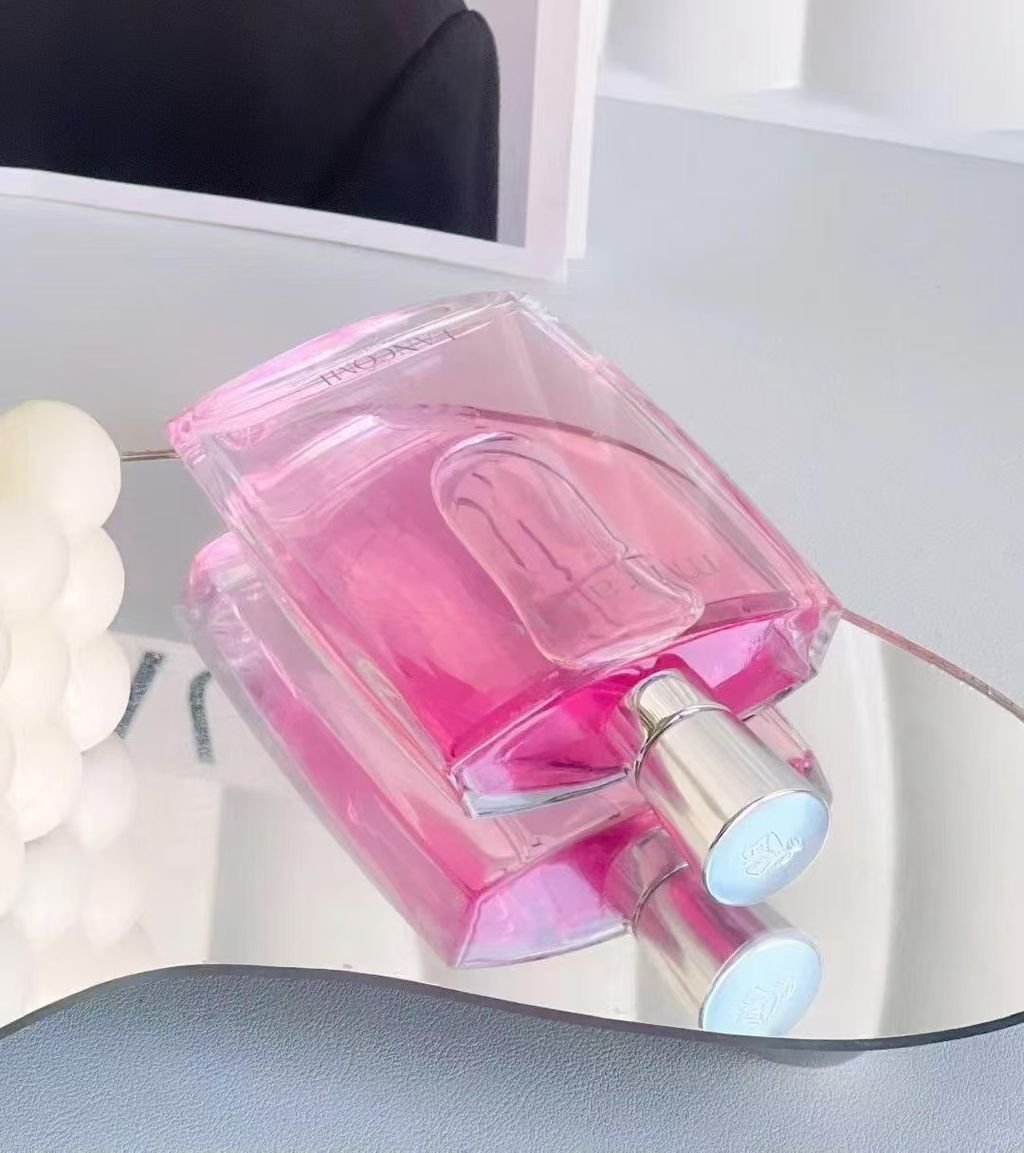 经典的泪珠形瓶身,搭配玫瑰金金属装饰和透明玻璃材质,简约中散发着现代感。瓶颈处的精致丝带设计呼应了香水名称“真爱”的浪漫寓意,展现出浓烈柔和的美学风格。