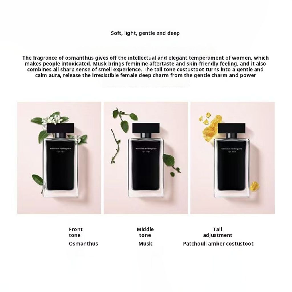中调:桂花(甜橄榄)的浪漫魅力与天鹅绒般的玫瑰花瓣交织在一起,营造出既温柔又精致的花香和谐。